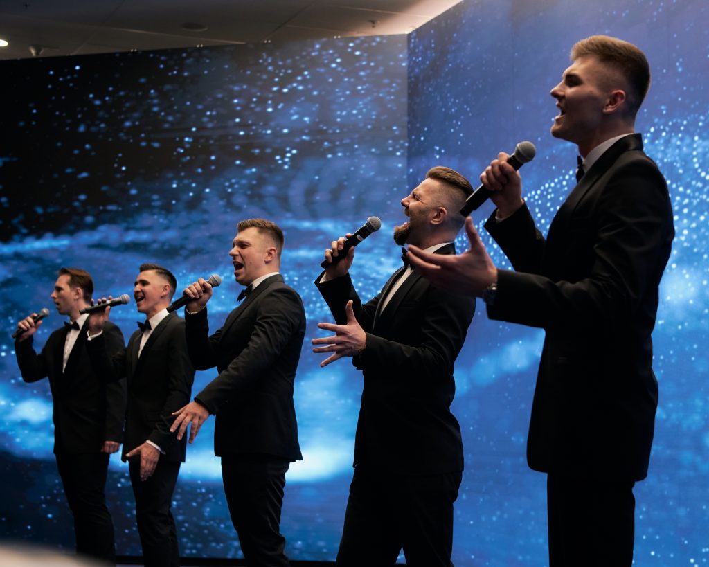 Если вы хотите, чтобы танцевальная часть вашего вечера была по-настоящему зажигательной и современной, обратите внимание на кавер-группы. Арт-группа «Астера» — это коллектив профессиональных музыкантов и вокалистов, которые исполняют мировые хиты вживую с потрясающей энергетикой. Их репертуар охватывает самые разные жанры: от поп-музыки и рока до диско и современных танцевальных треков. Живой вокал, качественный звук и харизма артистов создают эффект настоящего концерта. Гости не просто слушают музыку, а становятся частью шоу: подпевают, танцуют и получают заряд позитива. Выступление арт-группы «Астера» идеально подходит для дискотеки после официальной части, а также может стать ярким акцентом приветственной части или, наоборот, кульминацией вечера.