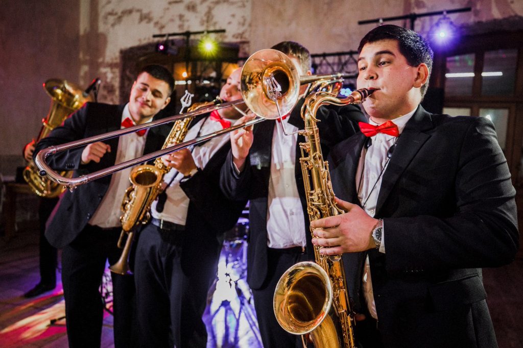 Если ваша свадьба проходит с большим размахом, в огромном зале или на открытой площадке (например, в загородном клубе или на территории отеля), духовой оркестр — отличный выбор для праздника. Мощное звучание медных и деревянных духовых инструментов невозможно не заметить. Такой музыкальный коллектив создаёт ощущение настоящего праздника, триумфа и веселья. Он идеально подходит для встречи гостей у входа в ресторан громкими фанфарами, для сопровождения торжественного выхода молодожёнов или для организации живой дискотеки. Такое выступление всегда вызывает бурю аплодисментов и оставляет неизгладимое впечатление у всех присутствующих.