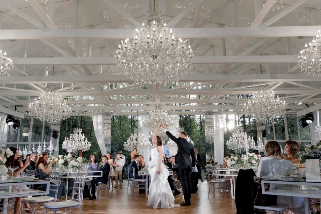 Эта загородная площадка для свадьбы сравнительно новая, «не заезженная» и очень инстаграммная. Комплекс находится всего в 2 километрах от Москвы, при этом на его приватной территории площадью 3 гектара расположился настоящий лес.